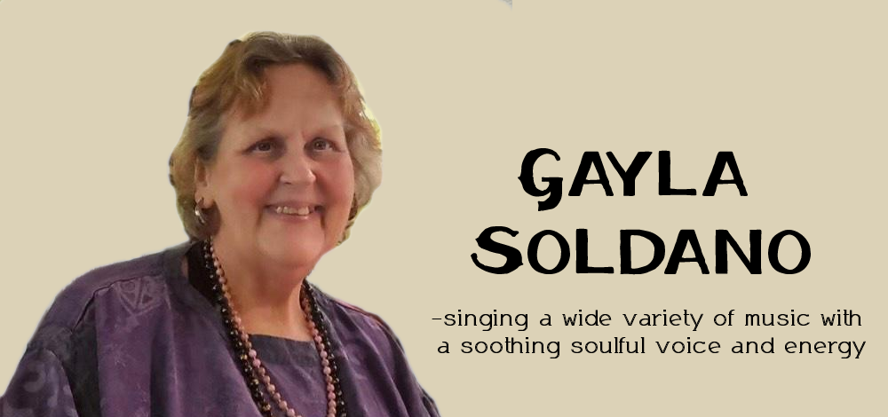 Let Gayla Soldano entertain your clients with her soothing, soulful voice and energy. She sings a wide variety of music - Easy Listening, Folk, Country, Standards and RB, mostly from the 50s thru 70s with a few originals songs .